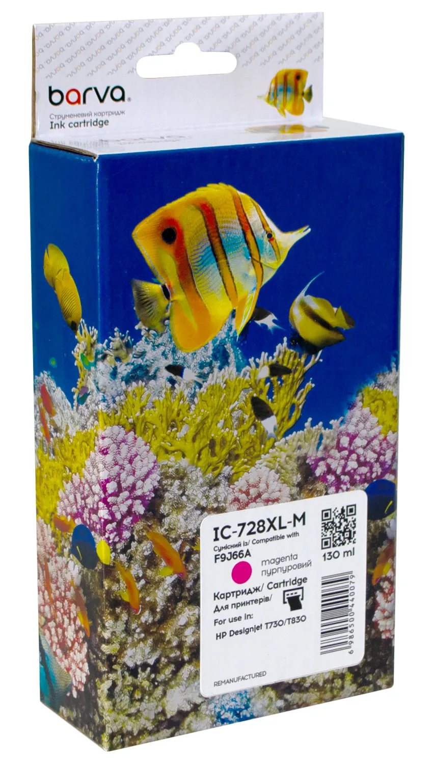 Картридж совместимый HP 728 (F9K16A) версия U1-U30, 300 мл, пурпурный Barva (IC-728XL-M), описание: