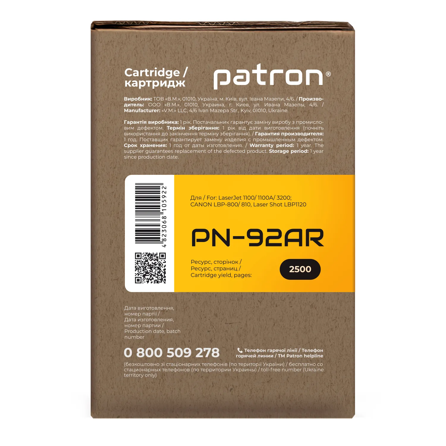 Мы позаботились о том, чтобы упаковка картриджа была не только экологичной, функциональной, имела минимально возможные физические размеры, но и содержала всю необходимую информацию. На ярко-оранжевой этикетке находится информация о продукте, его совместимости с печатающими устройствами, номер партии, дата изготовления, контакты производителя, а также номер телефона бесплатной горячей линии для украинских потребителей.