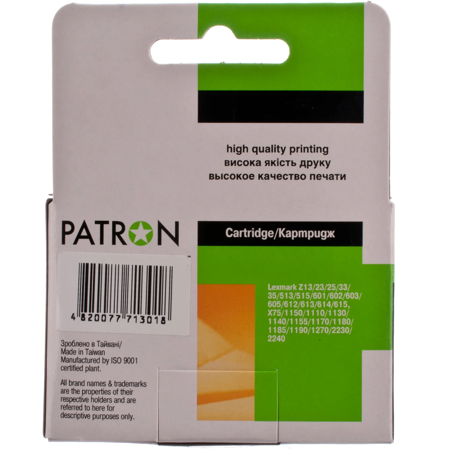 Струйные картриджи (cartridge) Patron уже завоевали популярность среди пользователей и являются прекрасной альтернативой оригинальным расходным материалам. Вся продукция проходит проверку в собственной лаборатории ООО «В.М.», благодаря чему Вы можете быть уверены в качестве продукции.