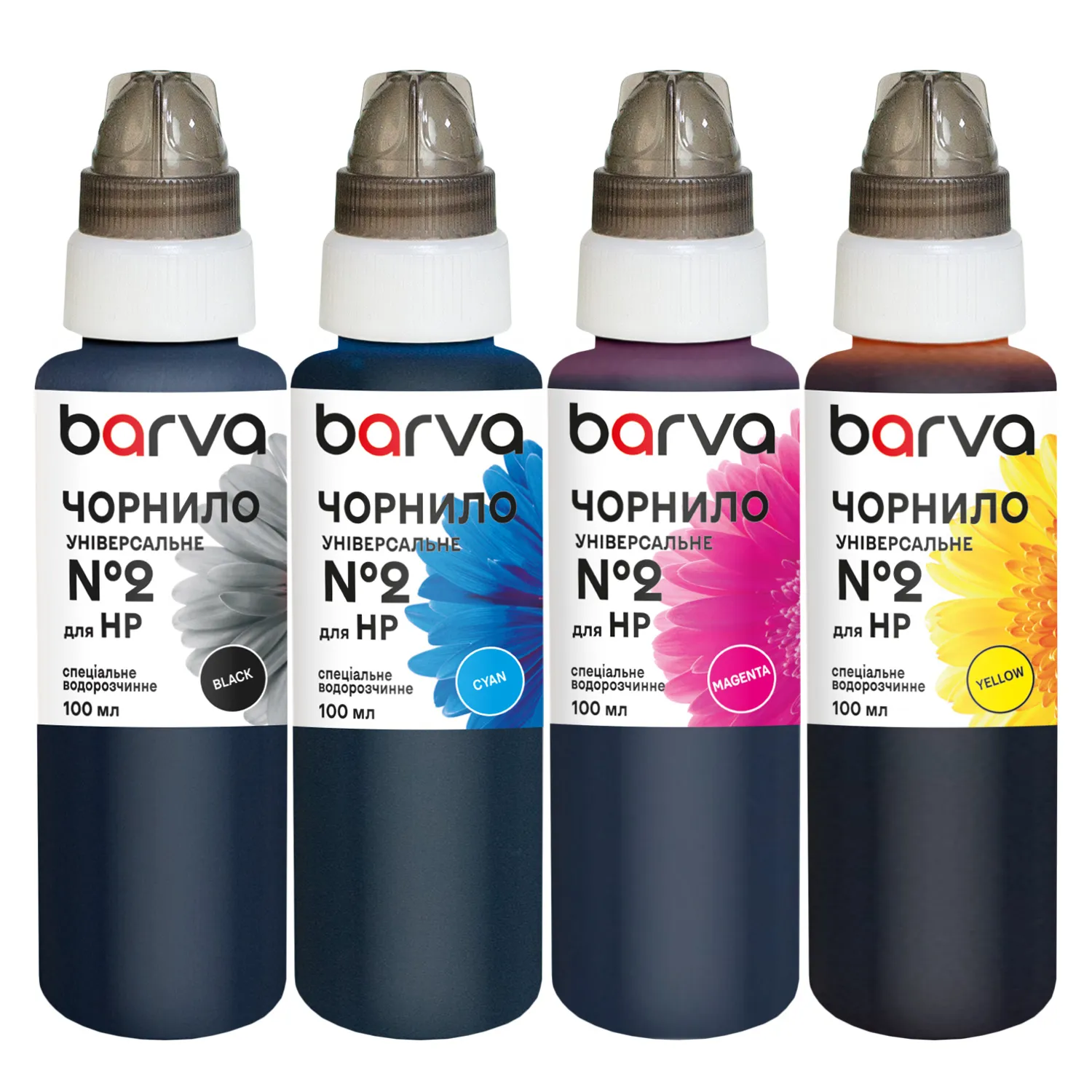 Комплект чернил для HP универсальные №2 4х100 мл, водорастворимые, BK/C/M/Y Barva (HU2-100-MP)