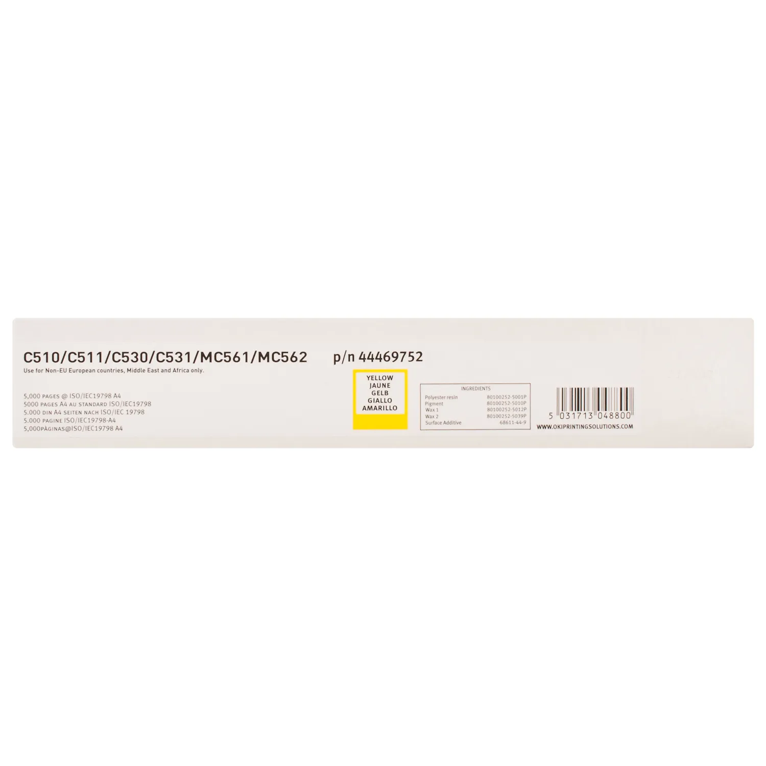 Ресурс тонер - картриджа C510-Y-N Oki составляет 5000 страниц.