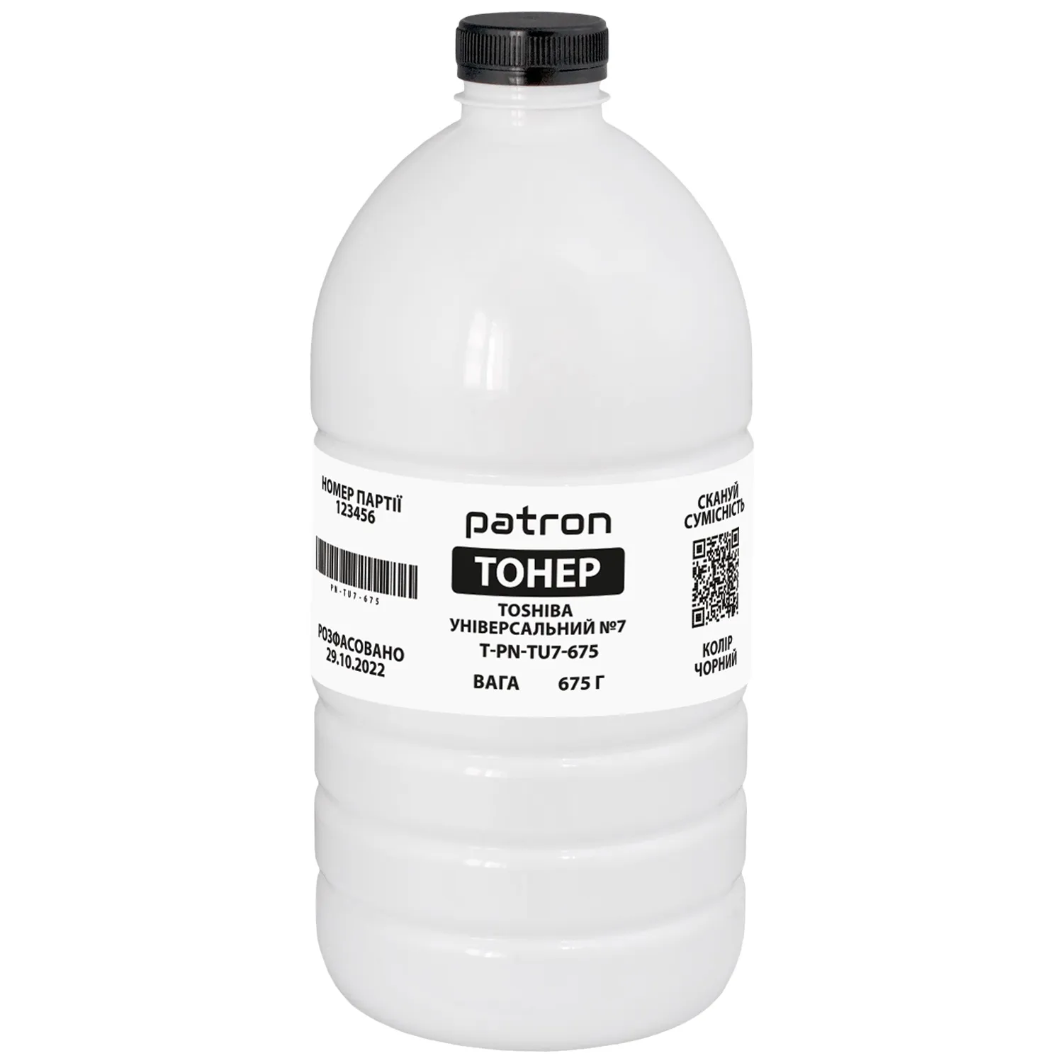 Тонер Toshiba универсальный №7 флакон, 675 г Patron (PN-TU7-675) относится к универсальной серии тонеров Patron: