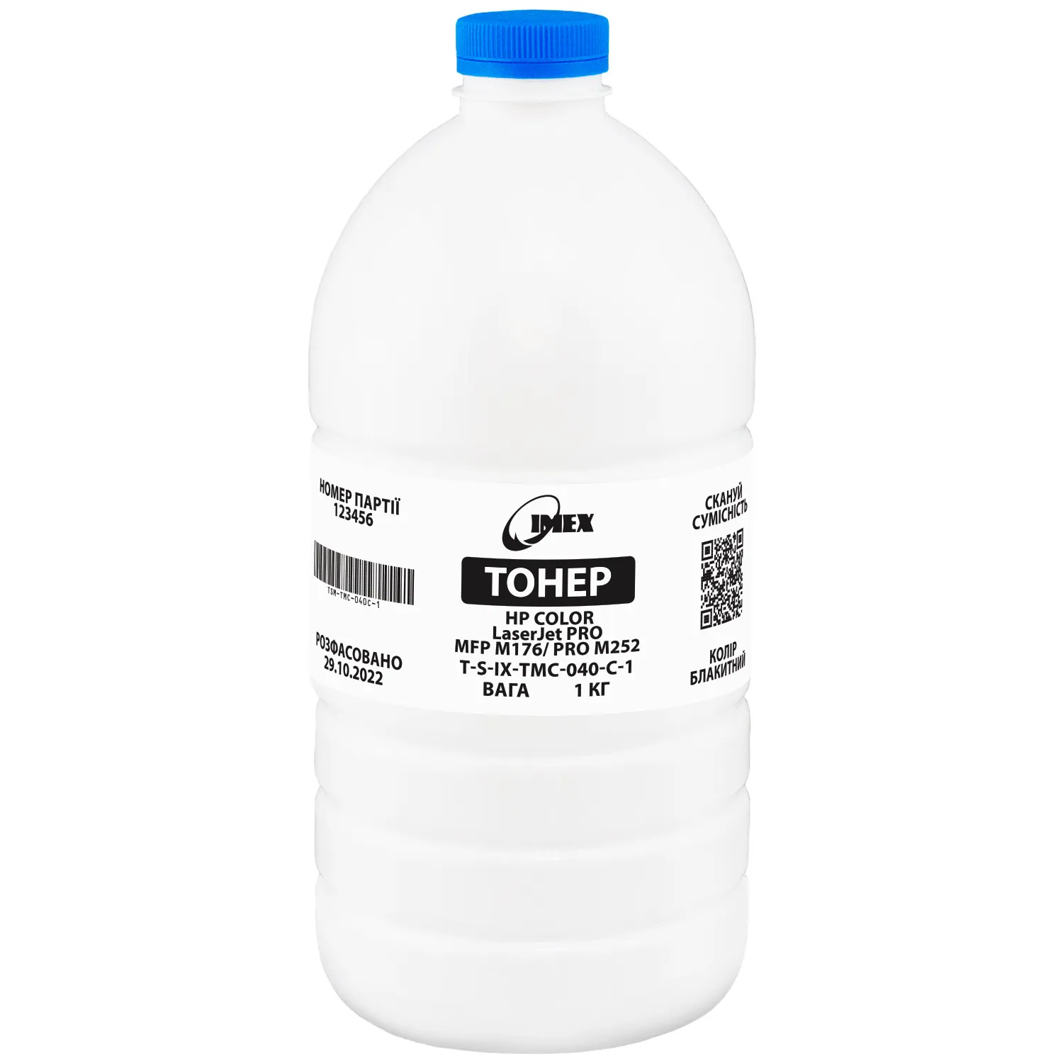 - Тонер HP Color LaserJet Pro MFP M176/Pro M252 блакитний, флакон 1 кг Imex (TSM-TMC-040C-1)