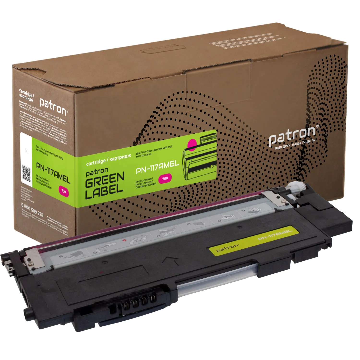 - Тонер-картридж сумісний HP 117A (W2073A) пурпуровий Green Label Patron (PN-117AMGL)
