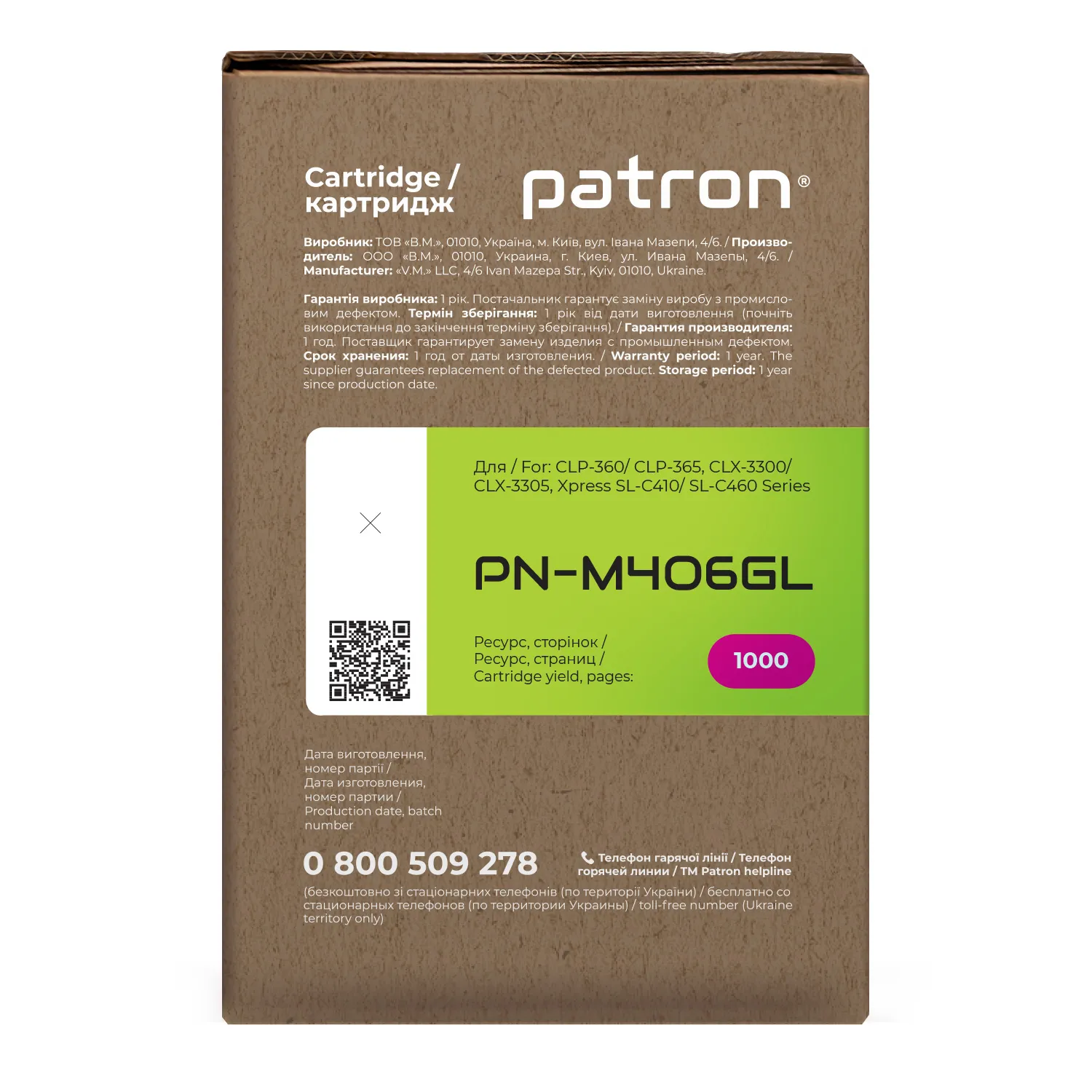 Тонер-картридж сумісний Samsung CLT-M406S Green Label, пурпуровий Patron (PN-M406GL) гарантія