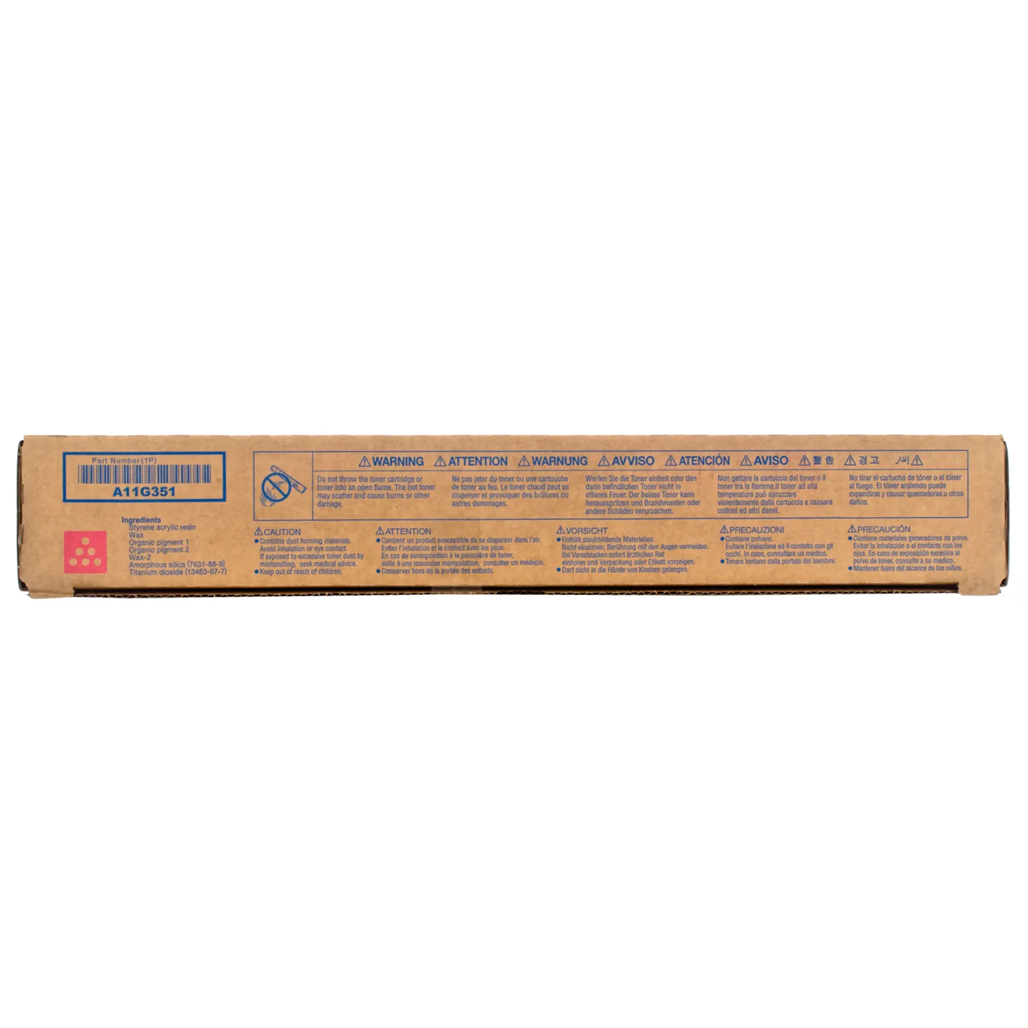 Картридж A11G351-M розроблений та виробляється компанією Konica Minolta, тому він є ідеальним вибором для бездоганної якості друку. Можна із впевненістю розраховувати, що оригінальний картридж для лазерного принтера Konica Minolta буде безвідмовно працювати протгом всього ресурсу – 26000 сторінок. Тонер-картридж TN-216M пурпуровий Konica Minolta (A11G351) відноситься до групи оригінальних витратних матеріалів, єдиним мінусом яких є висока вартість.