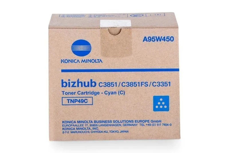 Картридж TNP-49C розроблений та виробляється компанією Konica Minolta, тому він є ідеальним вибором для бездоганної якості друку. Можна із впевненістю розраховувати, що оригінальний картридж для лазерного принтера Konica Minolta буде безвідмовно працювати протгом всього ресурсу – 12000 сторінок. Тонер-картридж TNP-49C блакитний Konica Minolta (A95W450) відноситься до групи оригінальних витратних матеріалів, єдиним мінусом яких є висока вартість.